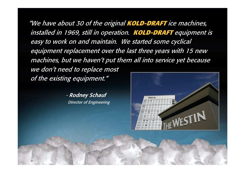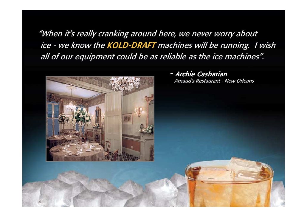 KOLD-DRAFT®, a leader in the manufacture of high quality commercial ice machines since 1954, has been the premier brand for discerning foodservice, bar, and hotel operations who demand the highest quality. ... Fetch Here